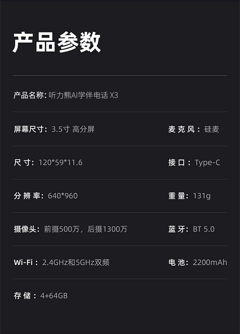 听力熊AI学伴电话 X3